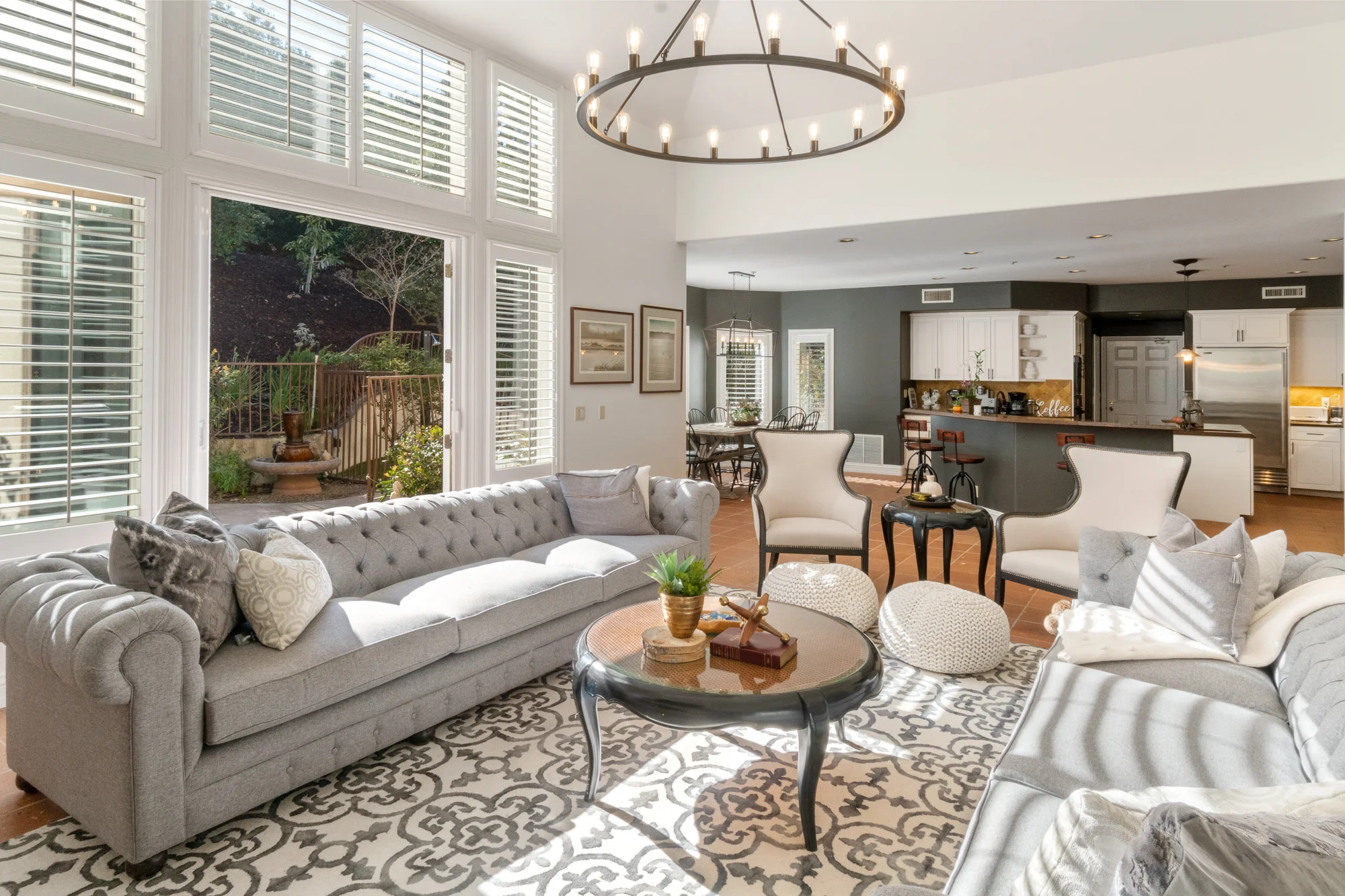 Upon entering the 6 bedroom, 7 bath vacation villa, you will discover the grand entry, living room, library, and a very skillful gourmet kitchen. Unwind and have a cocktail or glass of wine while sitting outside at the fire pit. This is your very own playground.